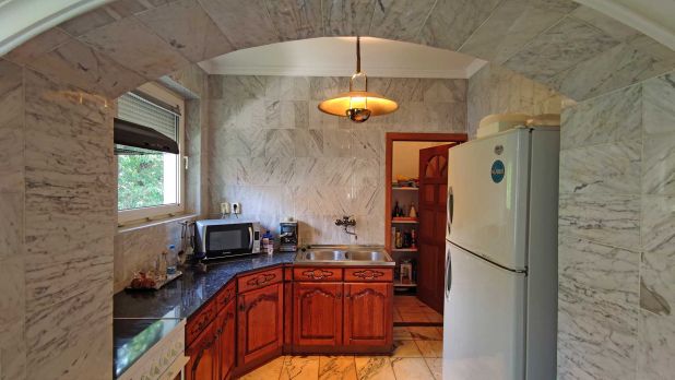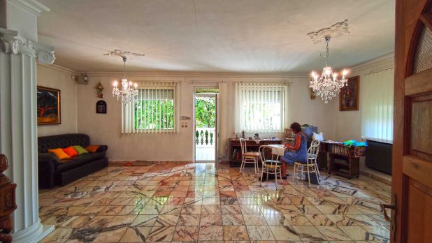 A képek a lakószobában (nappali) készültek. A padló- és oldalfalburkolatok nagy része gránit és márvány.