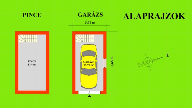 A kép, az alápincézett garázs alaprajzát ábrázolja.