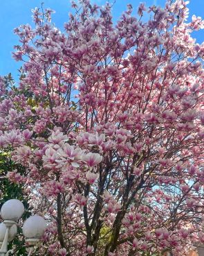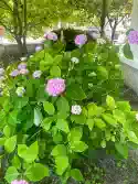 A kertben különféle dísznövények, örökzöldek vannak ültetve: magnólia, boróka, kúszó tuja stb.