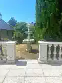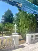A képeken, a parkosított kert egy-egy részlete látható, az árnyékolható kerti pavilonnal és a szökőkúttal. A kertben található még egy alápincézett garázs. A pince száraz, belmagassága 2,0 méter. A garázs külső befoglaló mérete: 3,61 m x 6,65 m. Garázs ajtó szélessége: 2,33 méter.