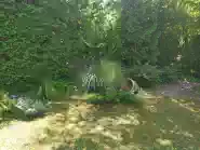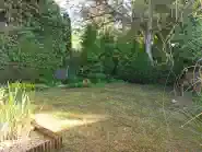 A nyaraló az utcának hátat fordító kertje intim, az élet a ház mögött zajlik. Van tűzrakóhely, bográcsozó és egy szerszámtároló házikó. Udvara növényzettel körbe van ültetve, ezáltal a szomszédok nem látnak bele az ember életébe. Az esővíz össze van gyűjtve egy tartályba és a szivattyú működtetésével lehet öntözni a füvet és a növényeket. Ez a béke és a nyugalom szigete.