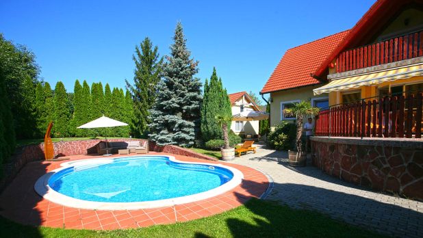 Panorámás, medencés lakóház, a Balaton északi partján eladó