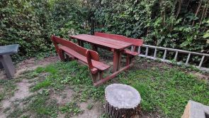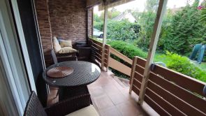A képeken a fedett és árnyékolható terasz látszik. A terasz szükség esetén a napellenzővel árnyékolható. Az apartmanból és a teraszról kitekintve a gondozott zöld kertet látjuk. A maximum 4 fő kényelmes nyaralását, pihenését biztosító apartman az alábbiakban kerül ismertetésre: